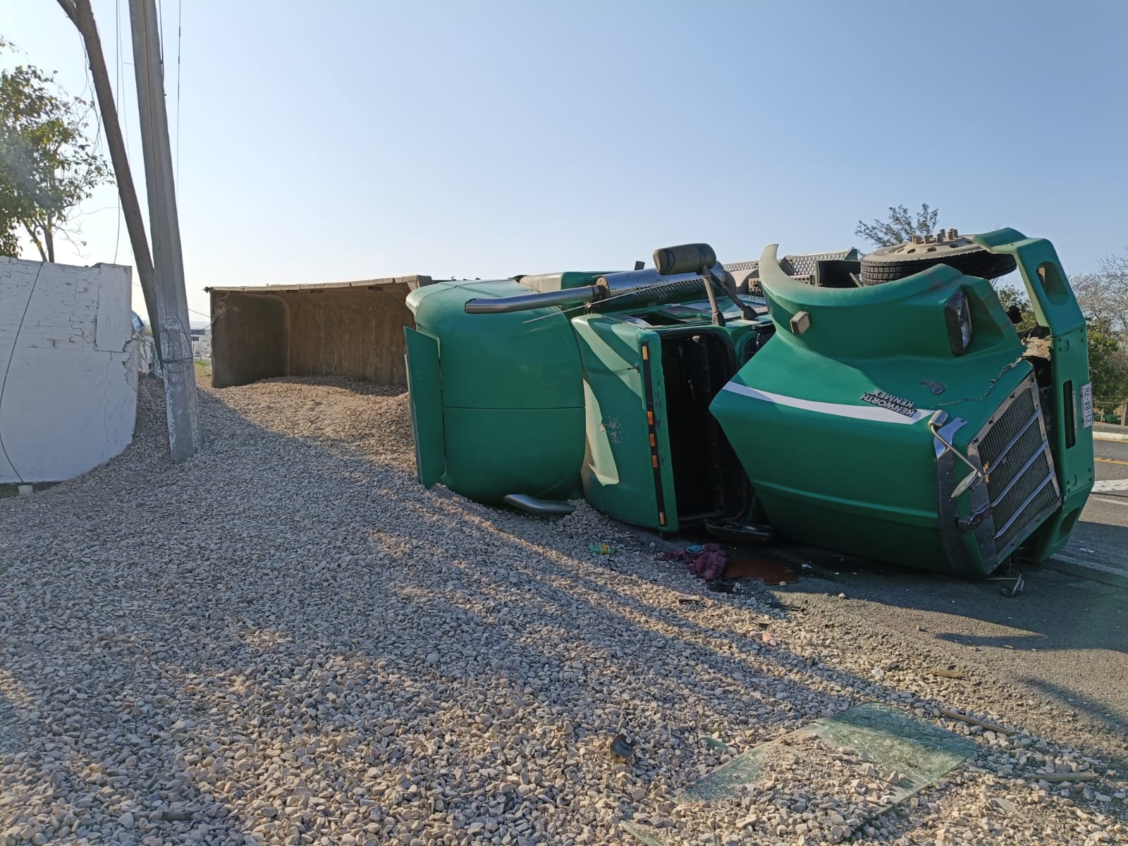 Altamira, Tamaulipas.- Derivado de la volcadura de un tractocamión sobre la Carretera Federal 80 tramo Tampico–Mante, se encuentra parcialmente suspendida la circulación a la altura del kilómetro 35.