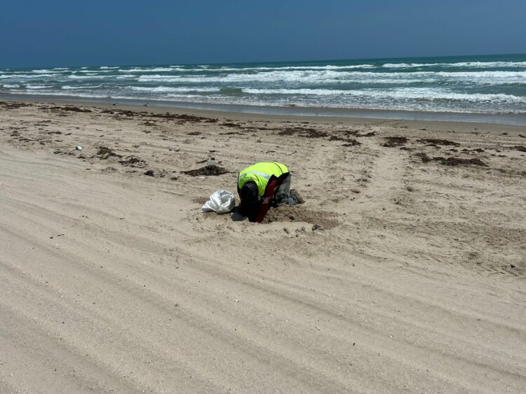 Soto la Marina, Tamaulipas.– Personal de la Guardia Estatal brindó apoyo para el resguardo de huevos de tortuga lora en la zona de Playa Grande, en el poblado La Pesca.