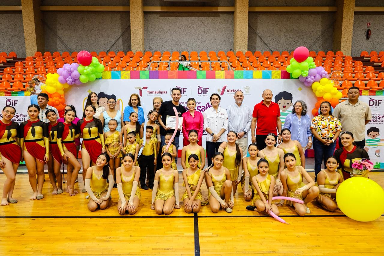 Ciudad Victoria, 17 de abril de 2026.- Con gran entusiasmo y la participación de cientos de niñas y niños acompañados de sus familias y docentes, el Sistema DIF Victoria, encabezado por su presidenta Lucy de Gattás, llevó a cabo el Concurso de Rondas Infantiles y Salto de Cuerda 2026 en su etapa municipal, en el marco de la iniciativa promovida por el Sistema DIF Tamaulipas, que preside la Dra. María de Villarreal.