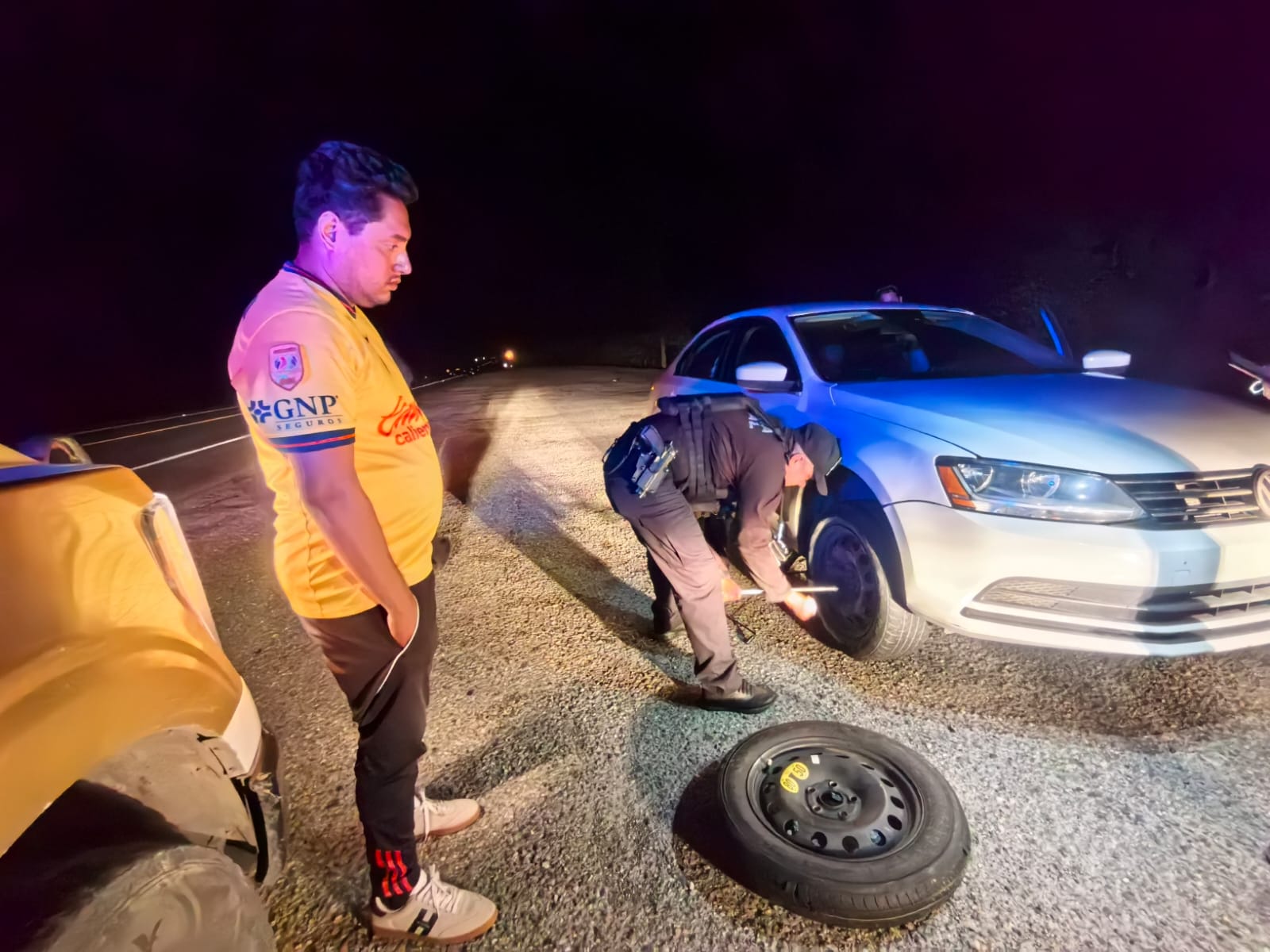 Tras conocer que el ciudadano no contaba con la herramienta necesaria, elementos de la Guardia Estatal se la proporcionaron y le asistieron para realizar la sustitución.