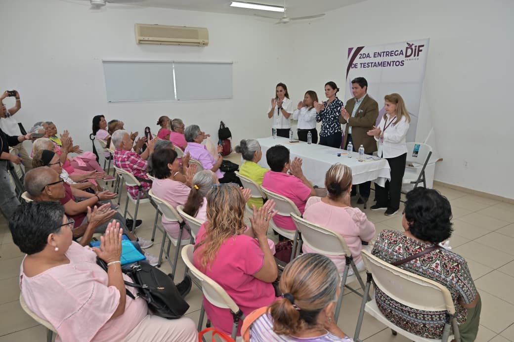 La presidenta del Sistema DIF Tampico, Dra. Luz Adriana Villarreal Anaya, encabezó la segunda entrega de testamentos a los adultos mayores adscritos a la Casa Club de la colonia Solidaridad,Voluntad y Trabajo, donde refrendó su compromiso por continuar con está iniciativa que ofrece tranquilidad y certidumbre jurídica.