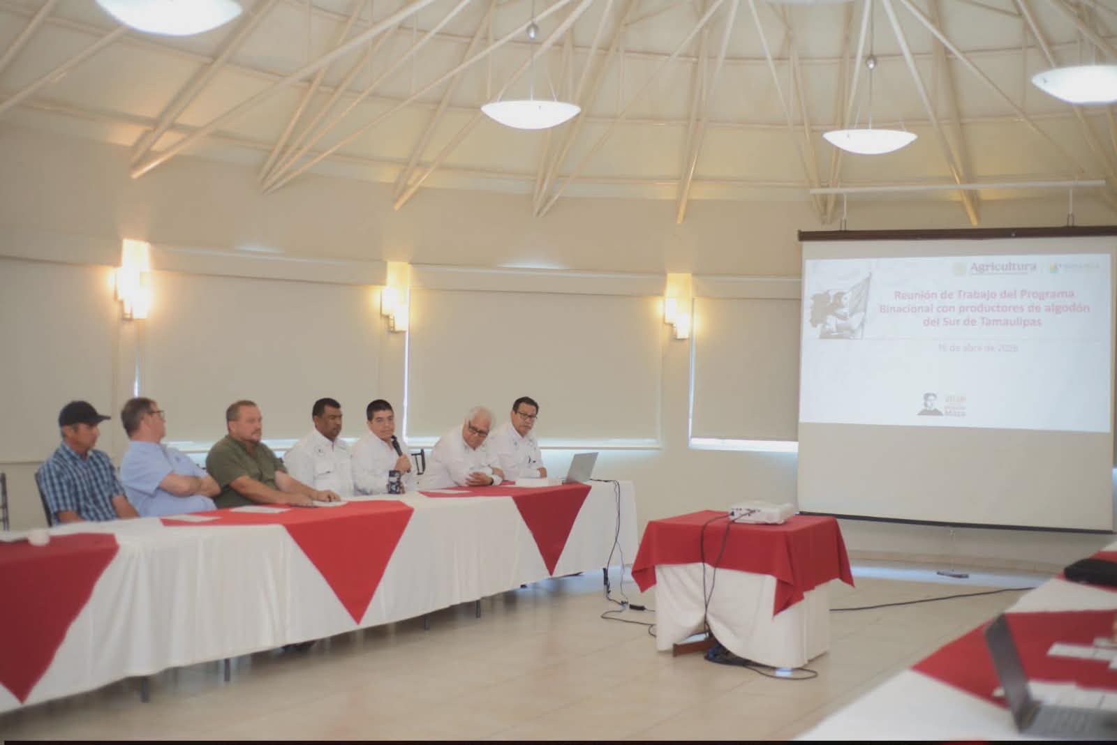 Tampico, Tamaulipas. – El subsecretario de Desarrollo Agrícola, Eliseo Camacho Nieto, asistió a una reunión de trabajo del Programa Binacional con Productores de Algodón de Tamaulipas, un espacio de coordinación estratégica orientado a atender los principales retos fitosanitarios del sector.