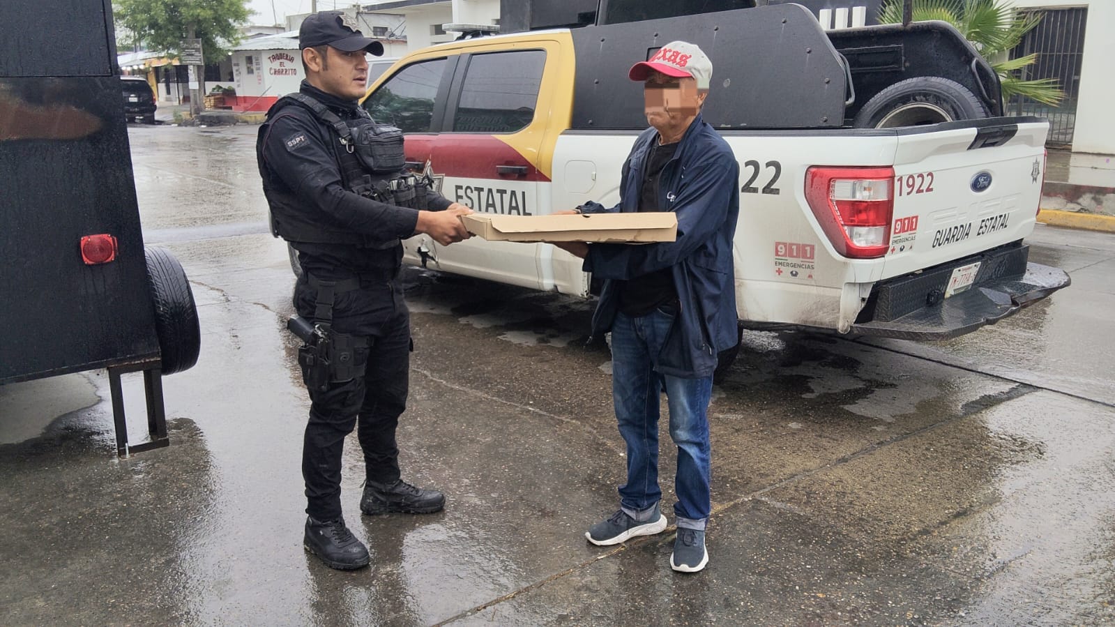 Por su parte, el señalado argumentó que se encontraba hambriento y no contaba con recursos para adquirir alimento, por lo que el personal de la Guardia Estatal optó por comprarle y regalarle una pizza.