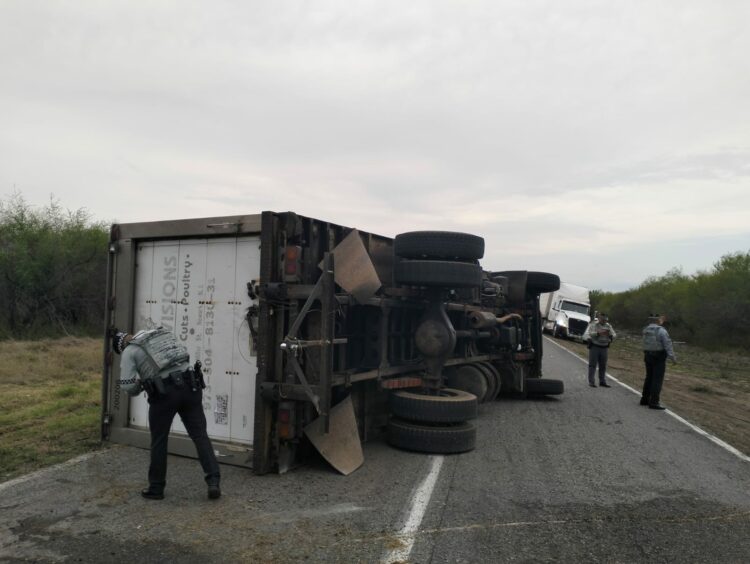 Padilla, Tamaulipas.- La circulación vehicular en la Carretera Federal 101 se encuentra suspendida a la altura del kilómetro 59 tras registrarse la volcadura de un camión que obstruyó ambos sentidos.