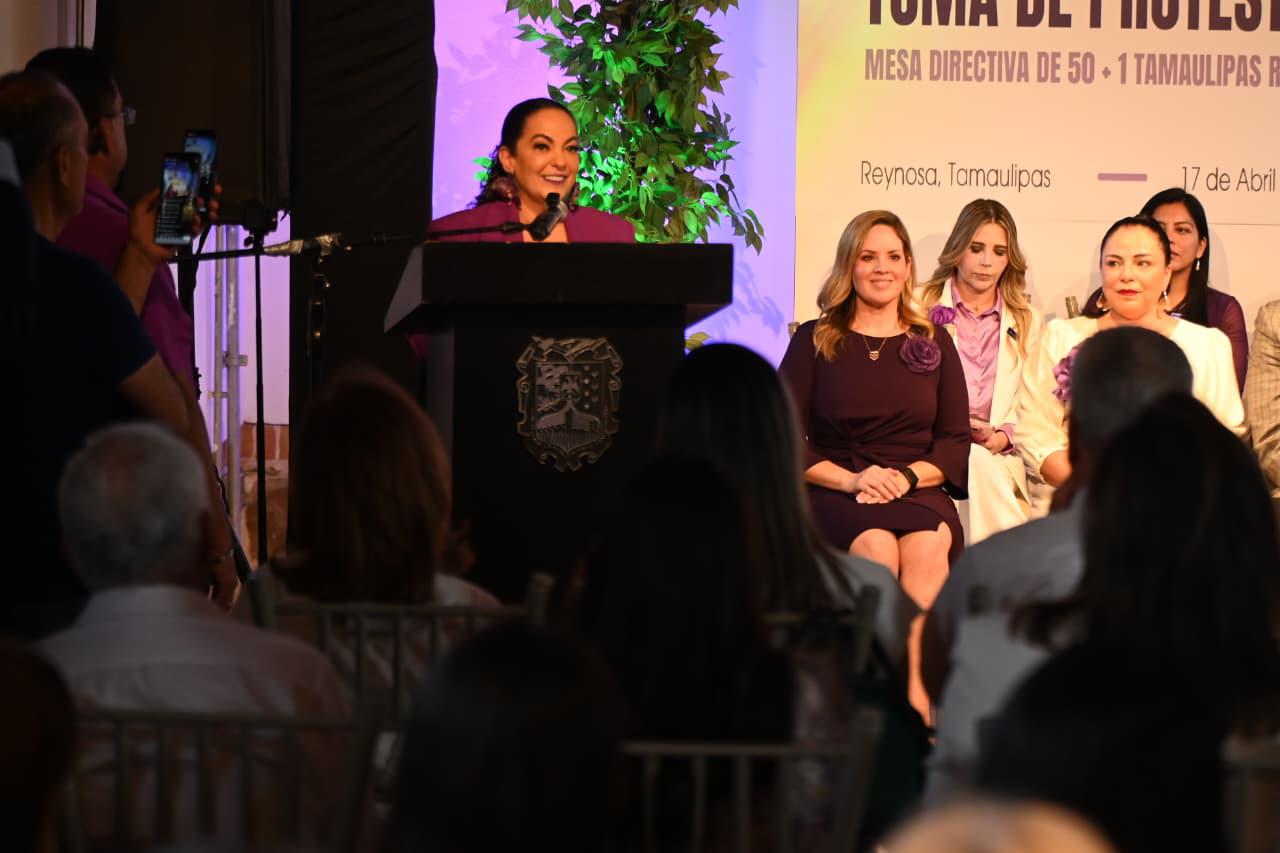 La senadora por Tamaulipas Olga Sosa Ruíz, reconoció los esfuerzos en defensa de las mujeres por parte de la colectiva 50 más uno en Tamaulipas, al acudir a la toma de protesta de la región norte. En su intervención informó a mujeres líderes de que trabajan por el bienestar de otras mujeres al visibilizar las historias y las acciones para cerrar el camino a las violencias, la reciente aprobación del Senado de la República de la Reforma Constitución en materia de feminicidio.