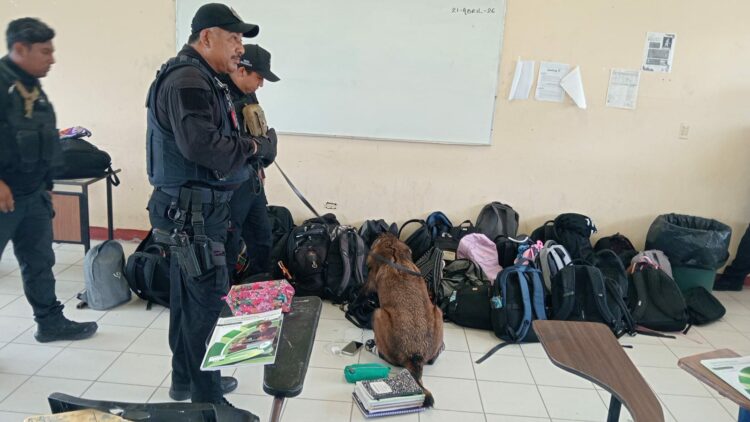 Para estas acciones, participó el canino Anubis, el cual cuenta con la especialidad en detección de narcóticos; acompañado de su manejador, acudió al plantel 189 del Centro de Bachillerato Tecnológico, Industrial y de Servicios (CBTIS).