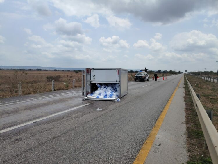 Altamira, Tamaulipas.- La circulación en la Carretera Federal 80 Tampico–Mante, a la altura del kilómetro 58, se encuentra parcialmente suspendida luego de la volcadura de un vehículo cerca de la entrada al ejido Santa Juana.