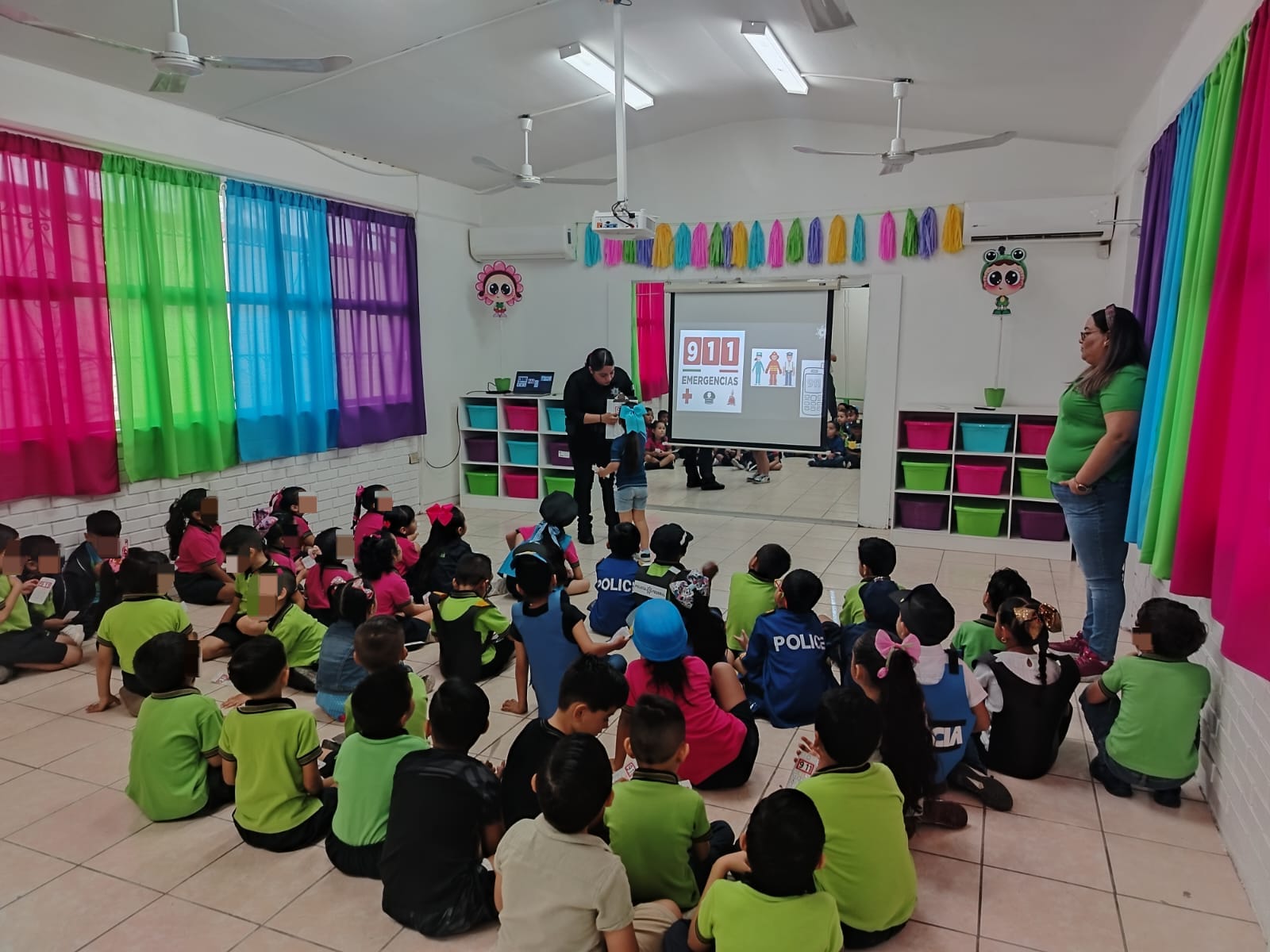 Durante la dinámica, los menores tuvieron la oportunidad de interactuar con los agentes, quienes explicaron de manera didáctica cómo actúan ante distintas situaciones y cuándo es necesario solicitar apoyo a través de las líneas de emergencia.