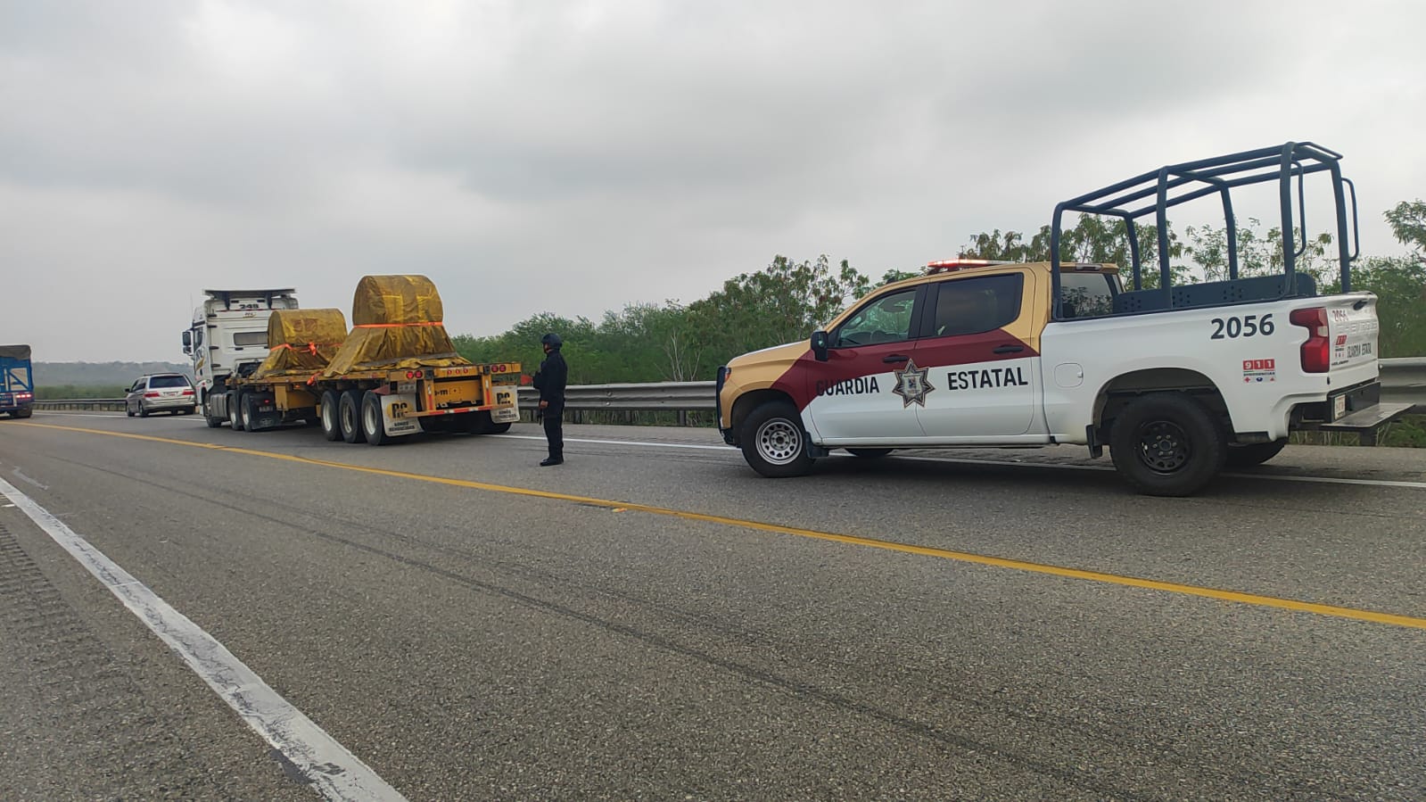 González, Tamaulipas.- Personal de la Guardia Estatal brindó apoyo en un accidente registrado sobre la Carretera Federal 81, en el tramo González–Llera de Canales, a la altura del kilómetro 27.