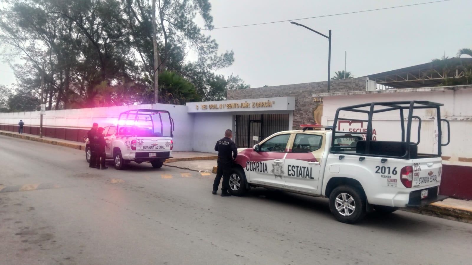 Por otro lado, en Altamira, se visitó la Escuela Secundaria General Número Uno, ‘’Benito Juárez García’’, en la cual se realizaron rondines en la periferia y principales accesos de la institución.