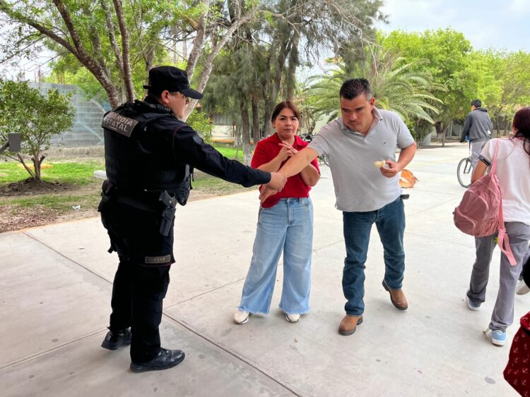 Uno de los puntos supervisados fue el CETIS 130, ubicado en la colonia Oberón de Valle Hermoso, donde los agentes realizaron labores de proximidad y vigilancia durante la hora de salida.