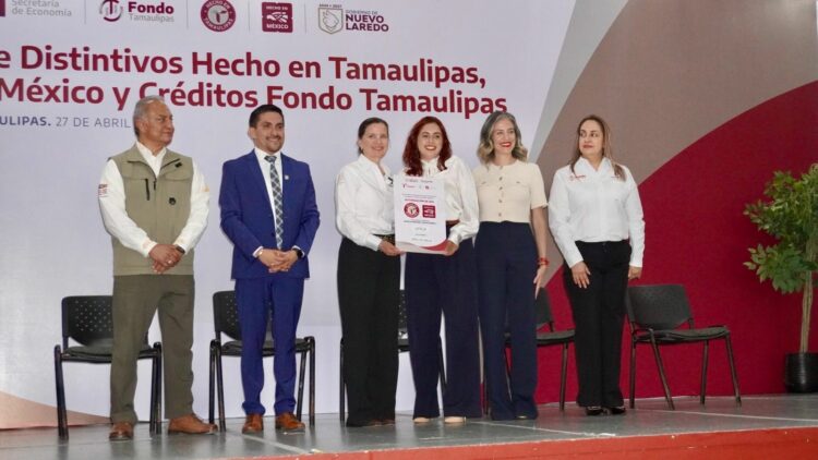Nuevo Laredo, Tamaulipas.– Con el propósito de fortalecer el desarrollo de las micro, pequeñas y medianas empresas en la región, la secretaria de Economía, Ninfa Cantú Deándar, encabezó la entrega de distintivos “Hecho en Tamaulipas” y “Hecho en México”, así como de créditos del Fondo Tamaulipas, en un evento que reunió a líderes empresariales y representantes de instituciones de educación superior del municipio.