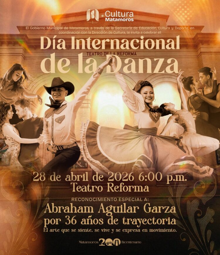 Matamoros celebrará el Día Internacional de la Danza con una tarde especial llena de talento, pasión y expresión artística en el emblemático Teatro de la Reforma, donde distintas disciplinas dancísticas se unirán para rendir homenaje a esta forma de arte que conecta emociones, cultura e identidad.