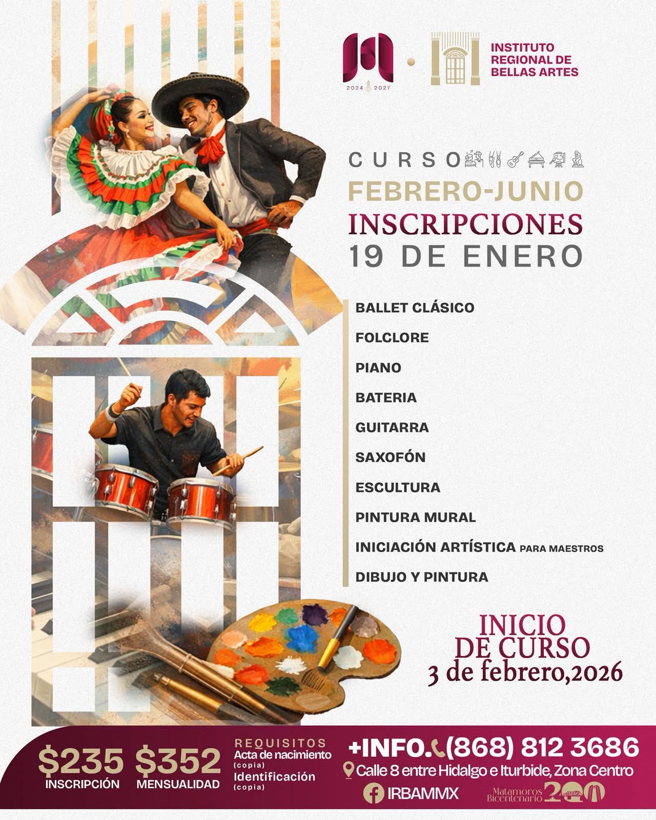 Gobierno de Beto Granados invita a inscribirte a los cursos artísticos del Instituto Regional de Bellas Artes Matamoros