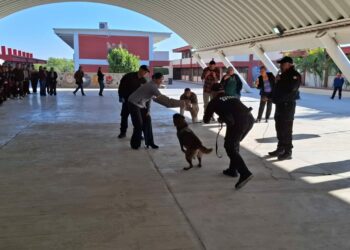 Ciudad Victoria, Tamaulipas.- El Agrupamiento Canino de la Guardia Estatal realizó una jornada de seguridad escolar en la Escuela Secundaria...