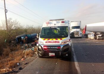 Jiménez, Tamaulipas.- Derivado de un accidente vehicular con personas lesionadas, la circulación vial se encuentra cerrada en tres carriles de...