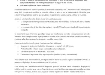 INFONAVIT, te ayudará a adquirir tu terreno y construir tu vivienda a tu gusto con un solo crédito