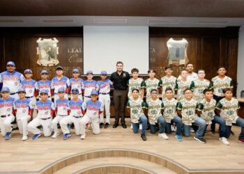 H. Matamoros, Tamaulipas.- El alcalde, Beto Granados recibió en Palacio Municipal a los equipos de la Liga Pequeña de Béisbol...