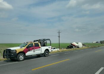 San Fernando, Tamaulipas.– Personal de la Guardia Estatal de Apoyo Carretero atendió la volcadura de un tractocamión tipo pipa que...