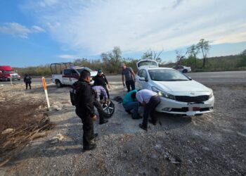 Nuevo Padilla, Tamaulipas.– Personal de la Guardia Estatal brindó apoyo a una familia que quedó varada tras sufrir la ponchadura...