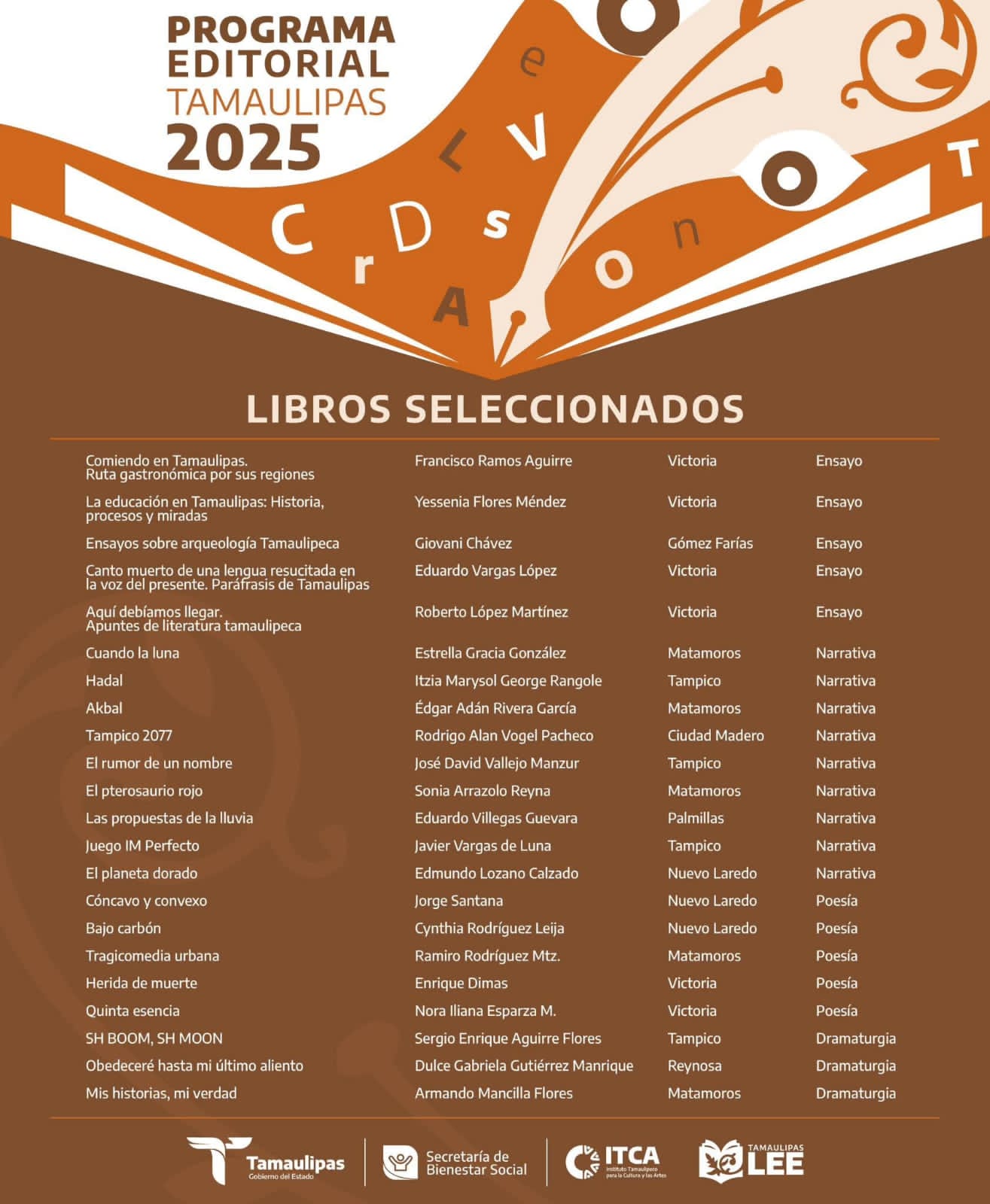 *Da a conocer ITCA proyectos seleccionados de la convocatoria del Fondo Editorial Tamaulipas 2025