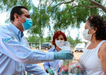 El presidente Enrique Rivas, benefició a habitantes de la colonia Arlin, con dotación de alimentos