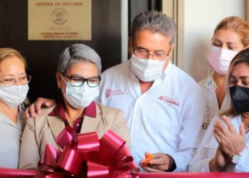En el corte del listón inaugural de la casa de gestión de la diputada local por el distrito XIX, Leticia...