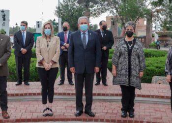El alcalde Arturo Sanmiguel Cantú encabezó este lunes en la Plaza Cívica Municipal, la ceremonia de Honores a la Bandera...