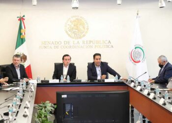 Senadores integrantes de la Junta de Coordinación Política, encabezados por Eduardo Ramírez, se reunieron con Mikel Arriola, presidente ejecutivo de...