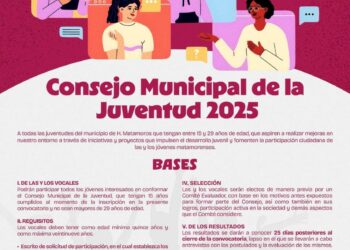 Read moreH. Matamoros, Tamaulipas.- El Consejo Municipal de la Juventud 2025 abre su convocatoria para jóvenes de 15 a 29 años...