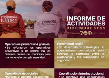 Read moreH. Matamoros, Tamaulipas.- El Gobierno de Beto Granados informó que, durante el mes de diciembre, la Secretaría de Seguridad Pública...