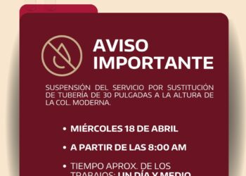 Read morePor trabajos de sustitución de tubería de 30 pulgadas a la altura de la Colonia Moderna, el próximo: 📅 Miércoles...