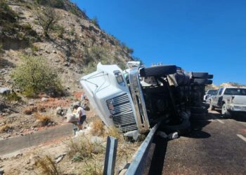 Jaumave, Tamaulipas.- A consecuencia de la volcadura de un tractocamión que transportaba sorgo, la circulación se encuentra cerrada en un...
