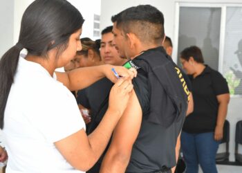 Ciudad Victoria, Tamaulipas.- En el marco de la campaña interna de vacunación, personal de la Secretaría de Seguridad Pública de...