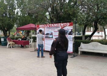 Aldama, Tamaulipas.– Personal de la Guardia Estatal instaló un módulo de reclutamiento en la plaza principal del municipio de Aldama,...